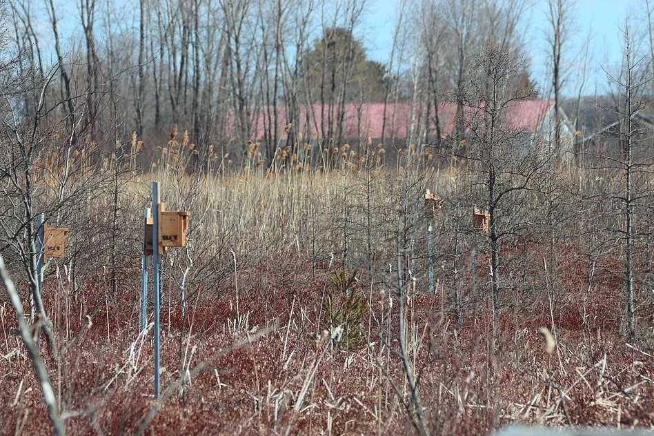 C'est fait, jeudi dernier 8 avril 2026 au matin, Denis Boisvert de la SLOE, accompagné d’un membre du conseil d’administration des Amis de l'étang Burbank et d’un employé de la Ville de Danville, a installé 6 nichoirs à Hirondelle bicolore à gauche de la passerelle qui mène à la tour, un nichoir pour le Merle d’Amérique derrière le bloc sanitaire et un nichoir pour le Canards branchu ou le Harle couronné à gauche de l'Hôtel de ville. La SLOE a également commencé à replacer 6 des 16 nichoirs qui étaient déjà installés sur le terrain de l’étang Burbank. À la fin des travaux, la mairesse de Danville Martine Satre a été rencontrée et se disait très heureuse et fière de la réalisation de ces travaux. Certains nouveaux projets ont d’ailleurs meublés la discussion tels des visites ornithologiques guidées pour les personnes à mobilité réduite, des conférences, la participation des scouts à la découverte de l’ornithologie et de la vie au marais .